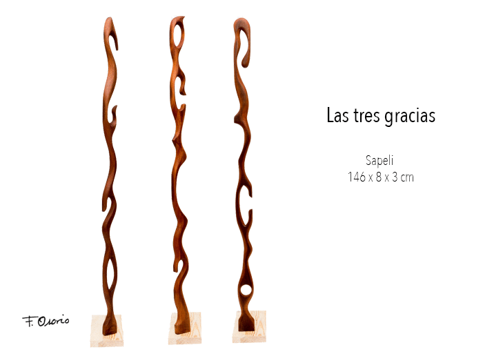 Las estructuras de las obras nos hablan de ingravidez, desmaterialización y fluyen en sentido ascendente buscando el infinito. Sugieren equilibrios imposibles.
